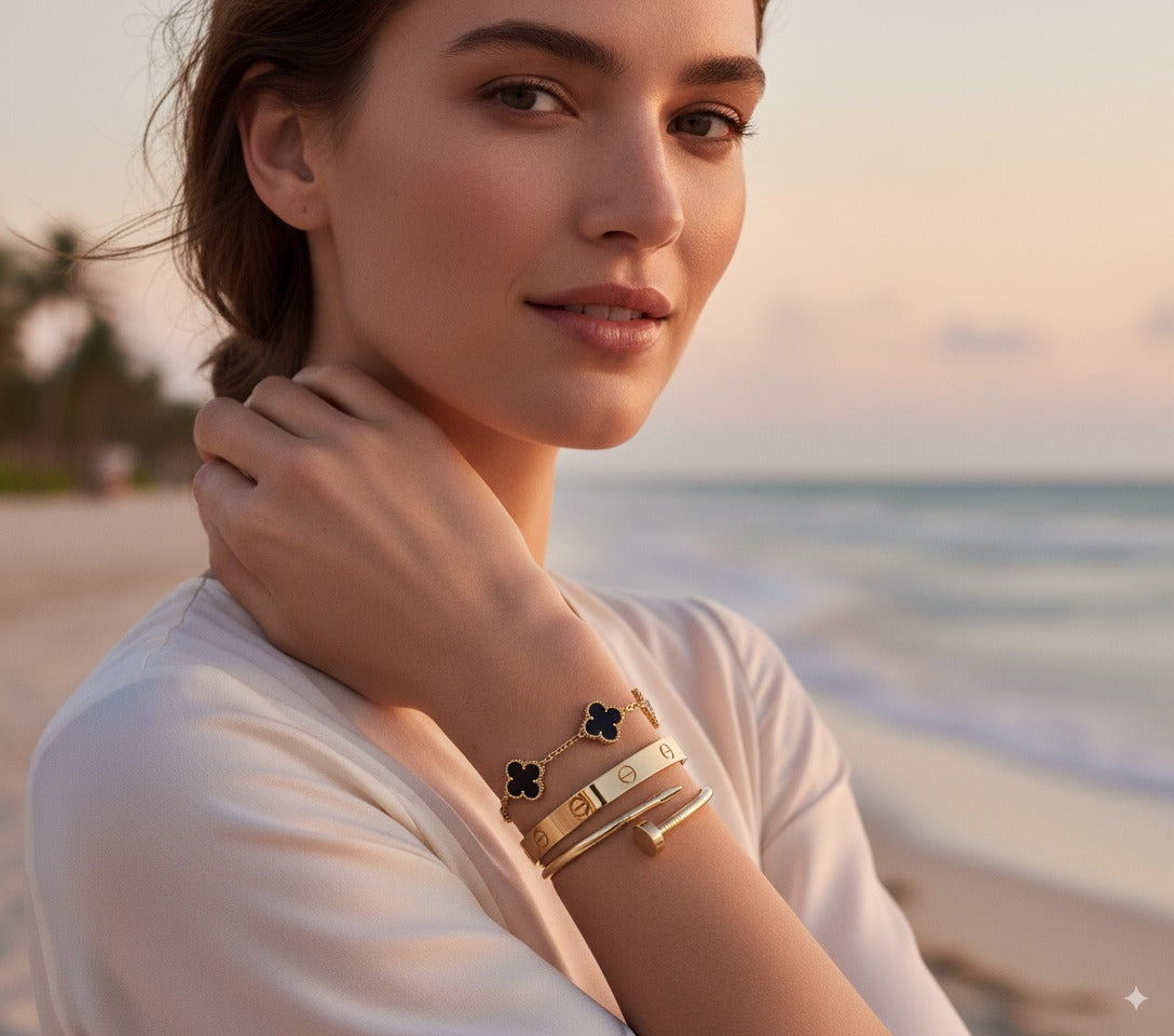 Every piece begins with a simple belief: your jewelry should move with your life, not limit it. From sunrise swimsto sunset celebrations, we craft pieces that embraceevery moment with you.